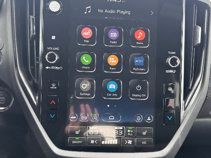 - Radio: Subaru 11.6" Multimedia Plus System -inc: valet mode, integrated center information display, AM/FM stereo HD Radio, multi-touch gesture high resolution display screen, voice activated controls, Bluetooth® audio streaming and hands-free phone connectivity w/SMS text messaging (refer to Subaru.com for cellphone compatibility), iPod control capability, smartphone integration: Android Auto and Apple CarPlay w/full screen view and wireless connection, SiriusXM satellite radio w/360L (free 4-month trial subscription included), USB and Over The Air (OTA) audio system update, steering wheel controls, 6 speakers, 3.5mm auxiliary input jack and roof mounted audio and satellite antenna